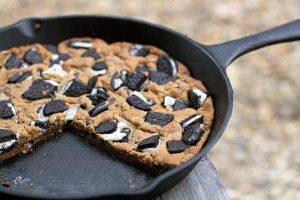 Milk’s favorite cookie meets a camper’s favorite cookware, the cast iron skillet. You really can’t beat a warm cookie fresh from the pan, and the best part about this recipe is that it requires very little time or preparation. Just buy two ingredients from your local grocery store. You won’t need to worry much about cleanup – this cookie will be gone in a snap.
